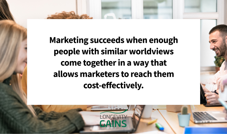 It’s an easy decision to put “positive beliefs about aging” in the profile of your ideal prospect. On the other hand, imagine someone in their 70s who has a negative view of aging, combined with the deteriorating health conditions that often come with it. Any effort to change their mind, much less act on a new belief, is unlikely to succeed.